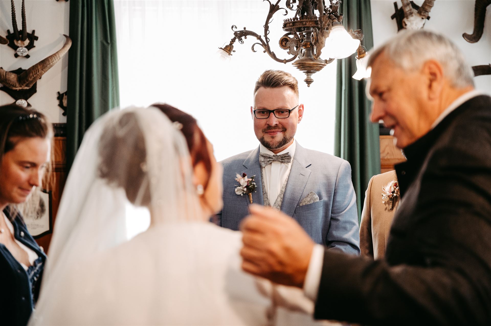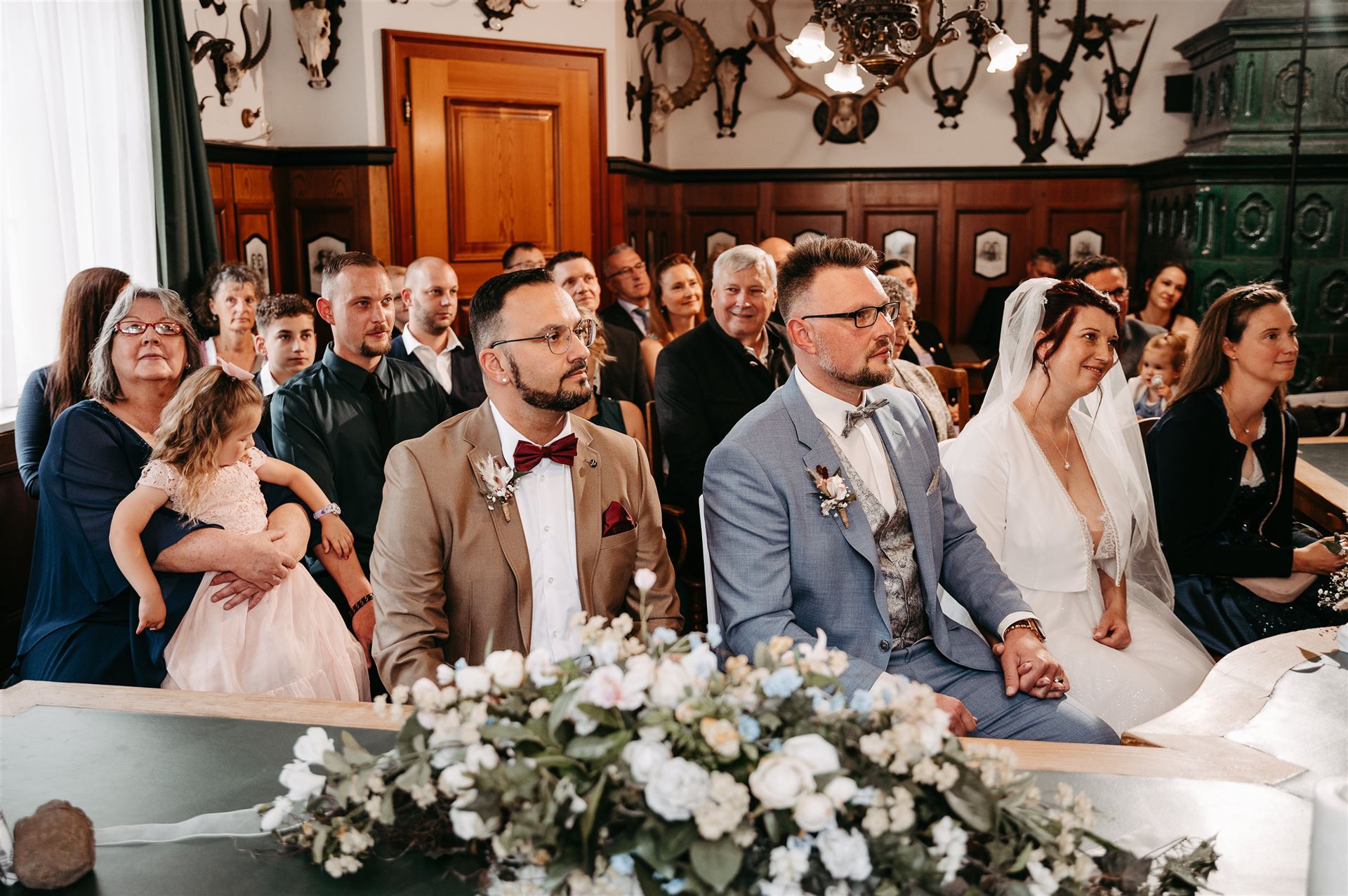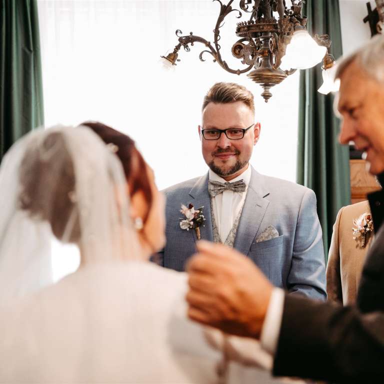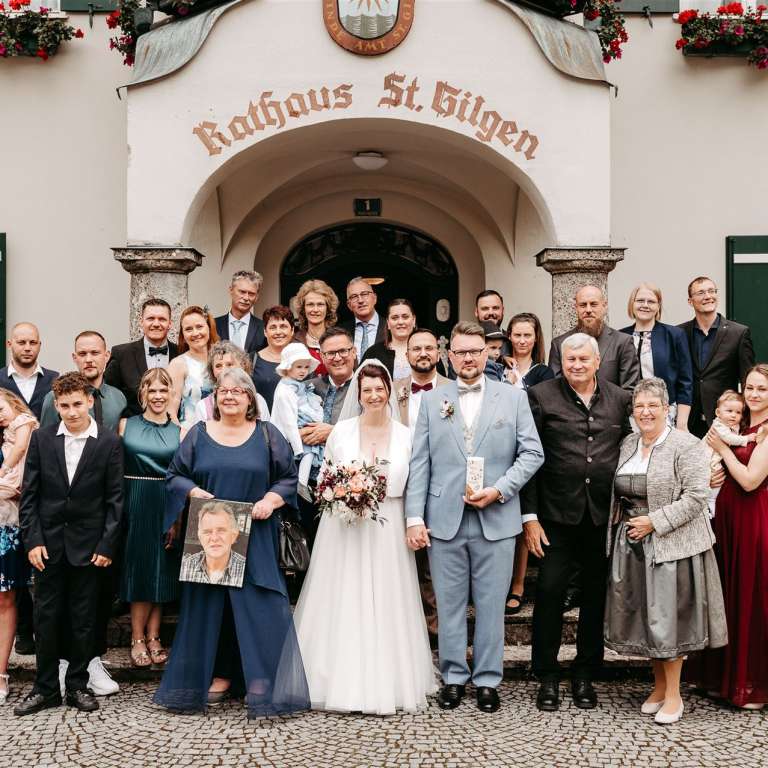Der Tag begann mit einer berührenden Trauung im historischen Rathaus von St. Gilgen. Umgeben von engen Freunden und der Familie gaben sich die Brautleute ihr Ja-Wort in einem Raum voller Liebe und Vorfreude. Die Intimität und Wärme des kleinen Kreises machten diesen Moment besonders ergreifend und unvergesslich.